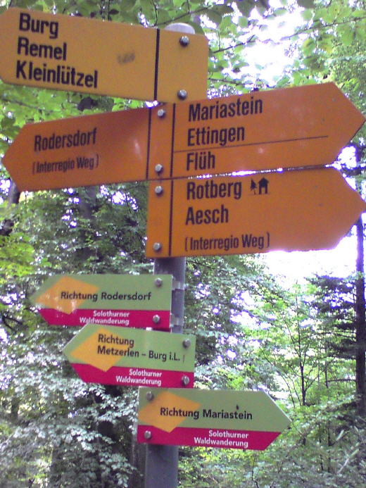 Da geht man in den Wald, um dem Schilderwald zu entfliehen. Und wie wird man in Metzerlen-Mariastein SO begrüßt? Mit einem Schilderwald im Wald. 23.07.2011 |